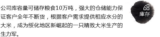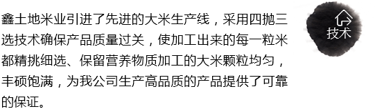 坐落在國(guó)家優(yōu)質(zhì)寒地水稻生產(chǎn)基地之一的松嫩平原腹地綏化市秦家鎮(zhèn),諾敏河,呼蘭河澆灌的黑色草甸土地,富含硒                      鉀 鈣                      鐵等礦物質(zhì),無(wú)污染的環(huán)境,豐產(chǎn)的水稻資源,使鑫土地米業(yè)不斷發(fā)展壯大,成為綏化地區(qū)新崛起的一支精制大米生產(chǎn)的生力軍。